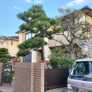 マツ二本はもみあげではなく剪定で