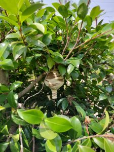 今回は通路沿いだったので刈込鋏でチョッキンして戻り蜂にちょっと追い回される