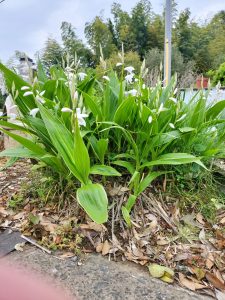 ヤードに生えるシロバナシラン