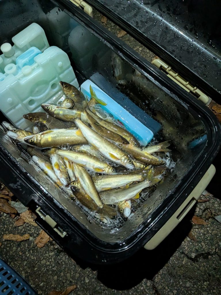 2時間ほどヘッドライトをつけて川を行ったり来たりしてアユと戯れ帰路へつく