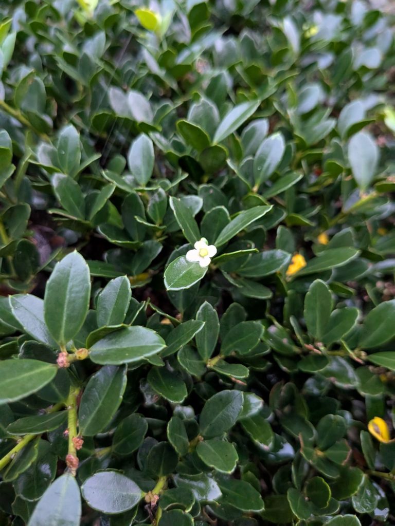 初夏に咲くはずの庭のイヌツゲがこの陽気で勘違いしたのか咲いていた