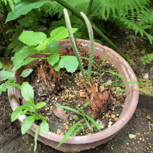 アリの巣になって穴のあきかけたやつからも根が出てきた。