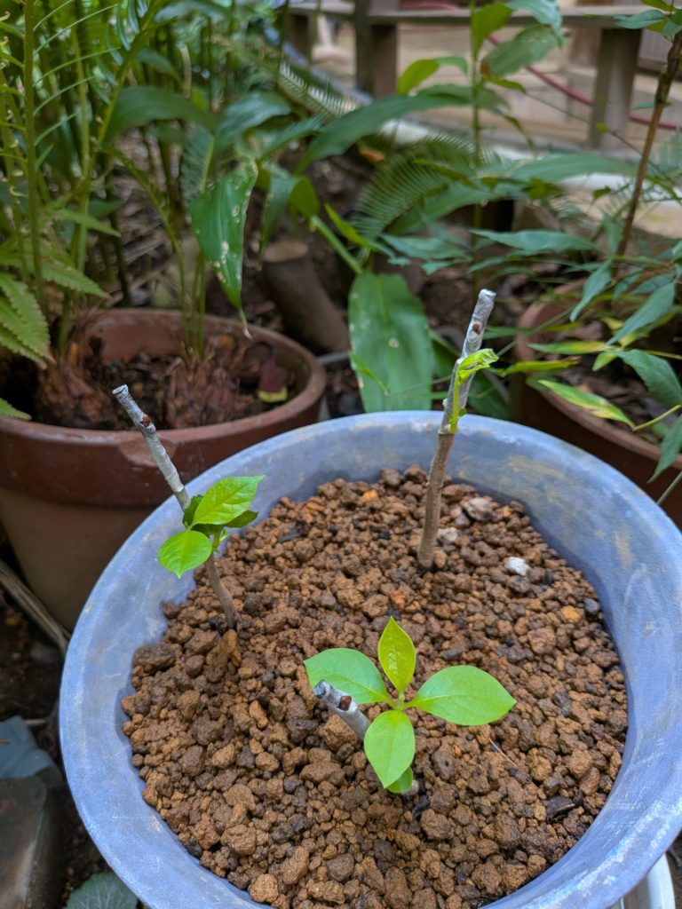 柿の台木から芽が出てきた