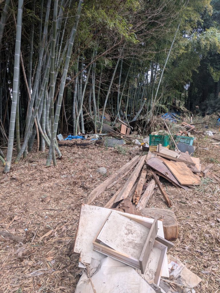 今回出た廃材は薪ストーブで燃やすとのことだがこの大量の木材がなくなるのはいつになるのだろう