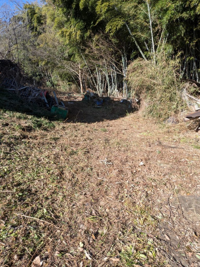 まずは通路と置き場をつくるために周囲を刈払う