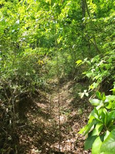 伐採現場の脇のくぼみは昔の街道あとだったそう