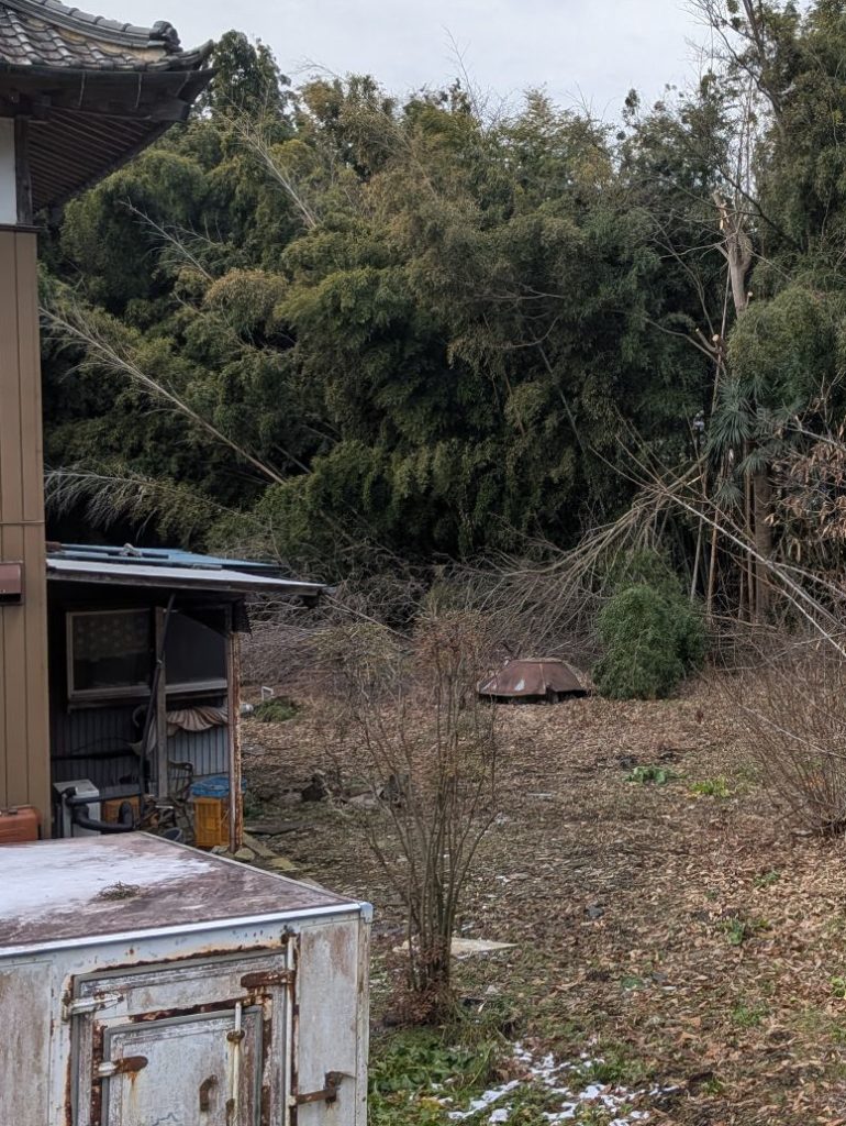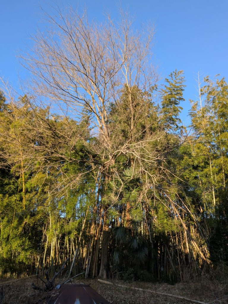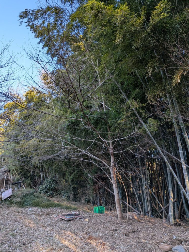 朝から鶏舎から生えていた竹や木、家の側の木を切っていく