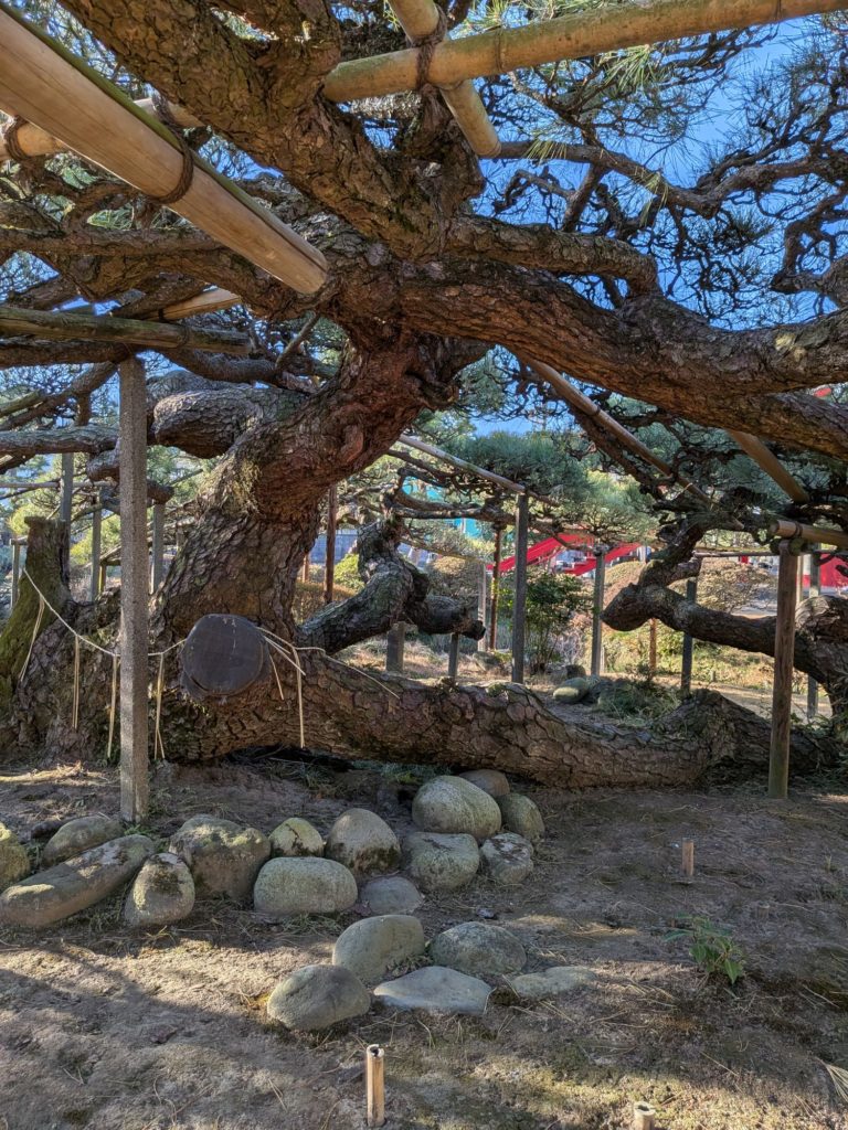 それでも残された枝は守られ、手入れを重ねられ、いまでは地を這うように広がる姿となりました。