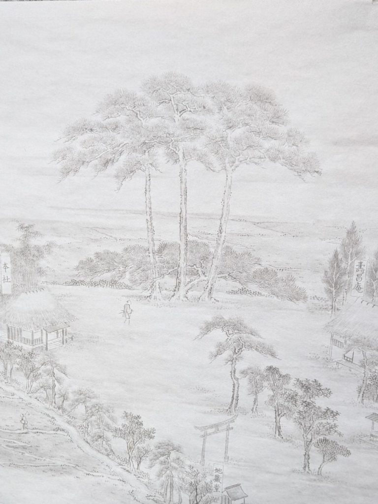 約200年前に編纂された新編武蔵風土記稿には、すでにこの松の姿が描かれています。