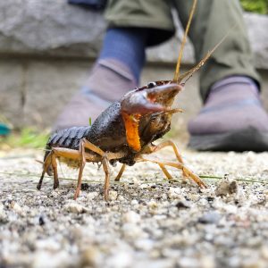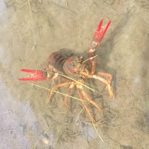 川に落ちた刈草を集めていたらザリガニも一緒に引き上げてしまったらしく