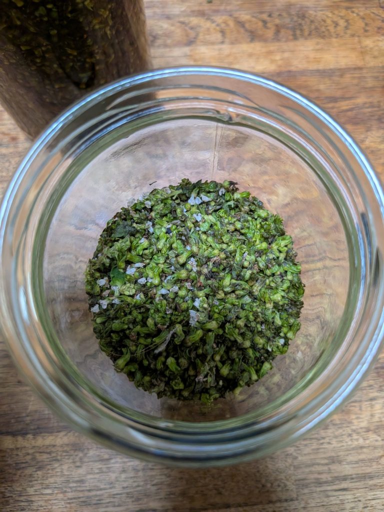 なかなか大変で少し大きめの瓶をいっぱいに出来るくらい採るにはかなりの量のシソが必要だった