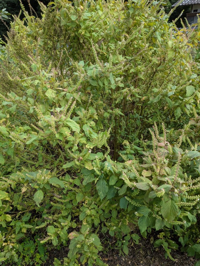 茨城のシソの実も少し早い感じだったけれど次にいつ来れるかわからないのでせっせと穂をしごく