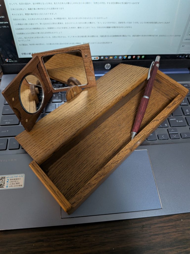 木工製品から感じる温もりや、使い込むほどに深まる愛着は、まさにそうした八百万の神との繋がり、「モノ」としてだけでなく、生命を失ってなお「いのち」としての木の存在を感じさせてくれます