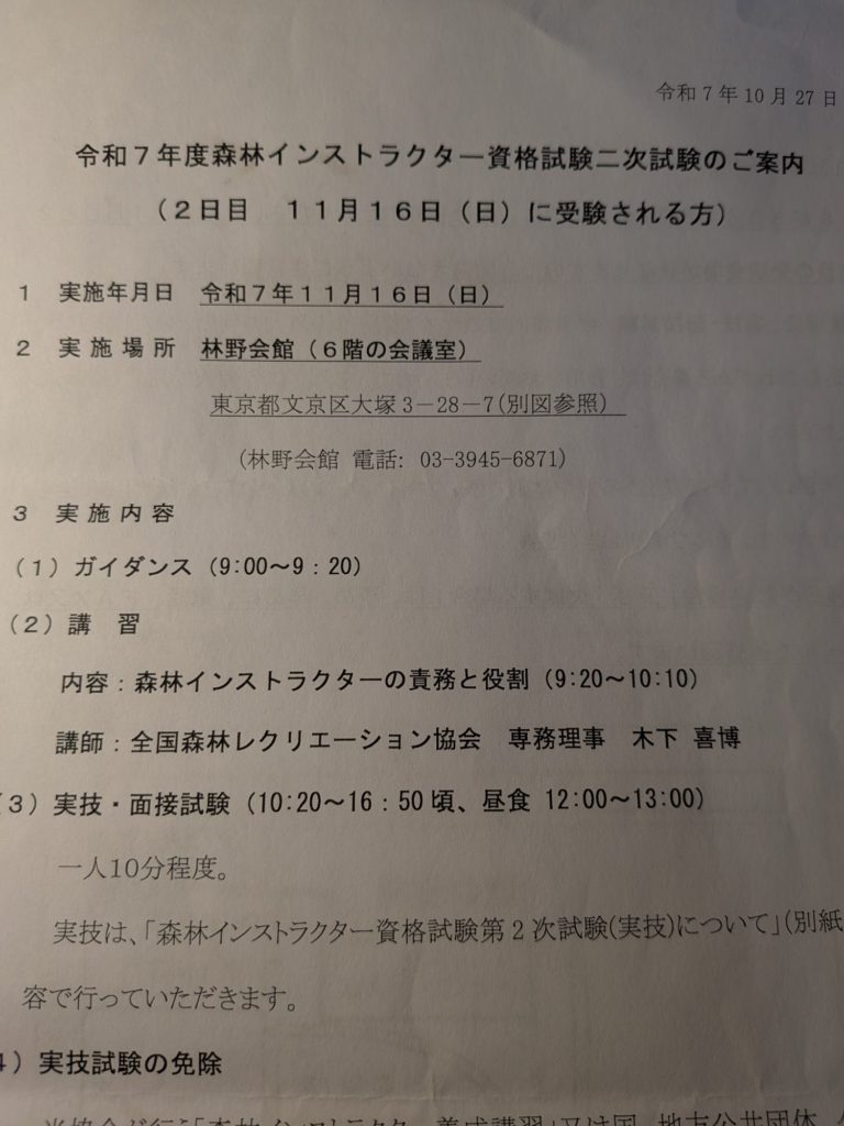 森林インストラクターの二次試験