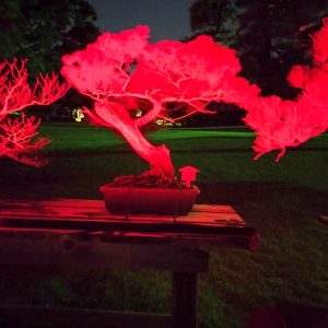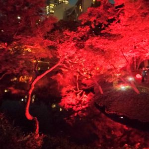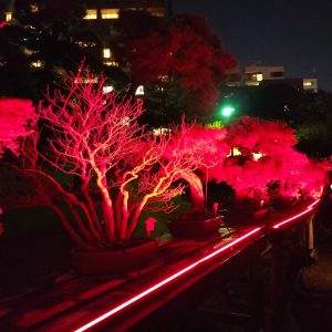 日本庭園を赤一色に彩るライトアップが毎日実施される