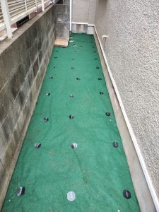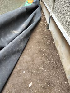 ガラが多い現場に合わせ3mm厚の防草シートを張らしていただいた
